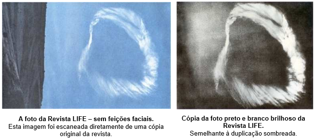 Uma cópia confiável da duplicação não foi disponível enquanto este artigo estava em preparação e assim a imagem preta e branca (que era similar à duplicação que o irmão Branham viu, exceto que as feições na duplicação eram de certa forma mais pronunciadas) foram utilizadas para fazer a comparação apresentada abaixo.