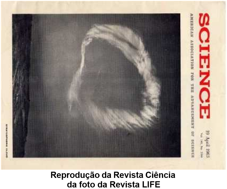 Quando subiu, eu não sabia que os observatórios e coisas tais, até o México, estavam tirando essa foto. A revista Life publicou-a enquanto Isto subia. E muitos de vocês… Aqui está a revista Life publicando a foto Disto. Uma coisa misteriosa aqui, e eles disseram que não sabem de onde veio; está tão alto. Está acima de todas as esferas e tudo mais para ser… É demasiado alto para nevoeiro, porque são trinta milhas de altura [48 km – Trad.] e vinte e sete milhas de largura [43 km – Trad.] depois que chegou àquela altura. Não há nem mesmo umidade ou mais nada lá em cima, veja.